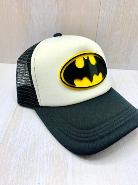 Gorra en tonalidad blanca con negro, con el logo de BATMAN en la parte frontal.